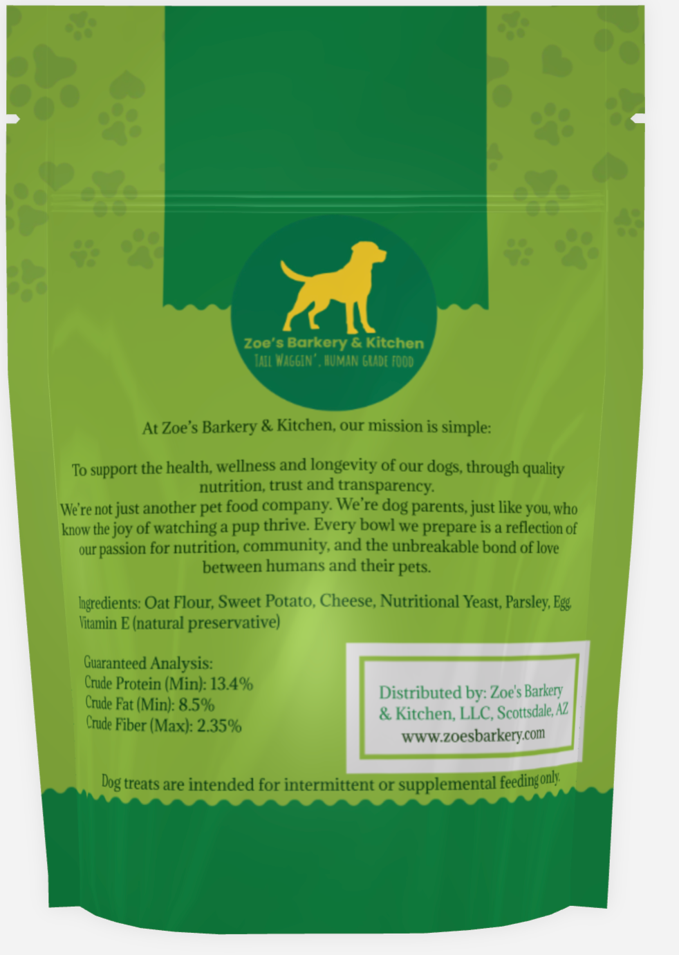 Ingredients: Oat Flour, Organic Sweet Potato, Cheddar Cheese, Nutritional Yeast, Parsley, Egg, Vitamin E (Natural Preservative). Gluten-Free biscuits.